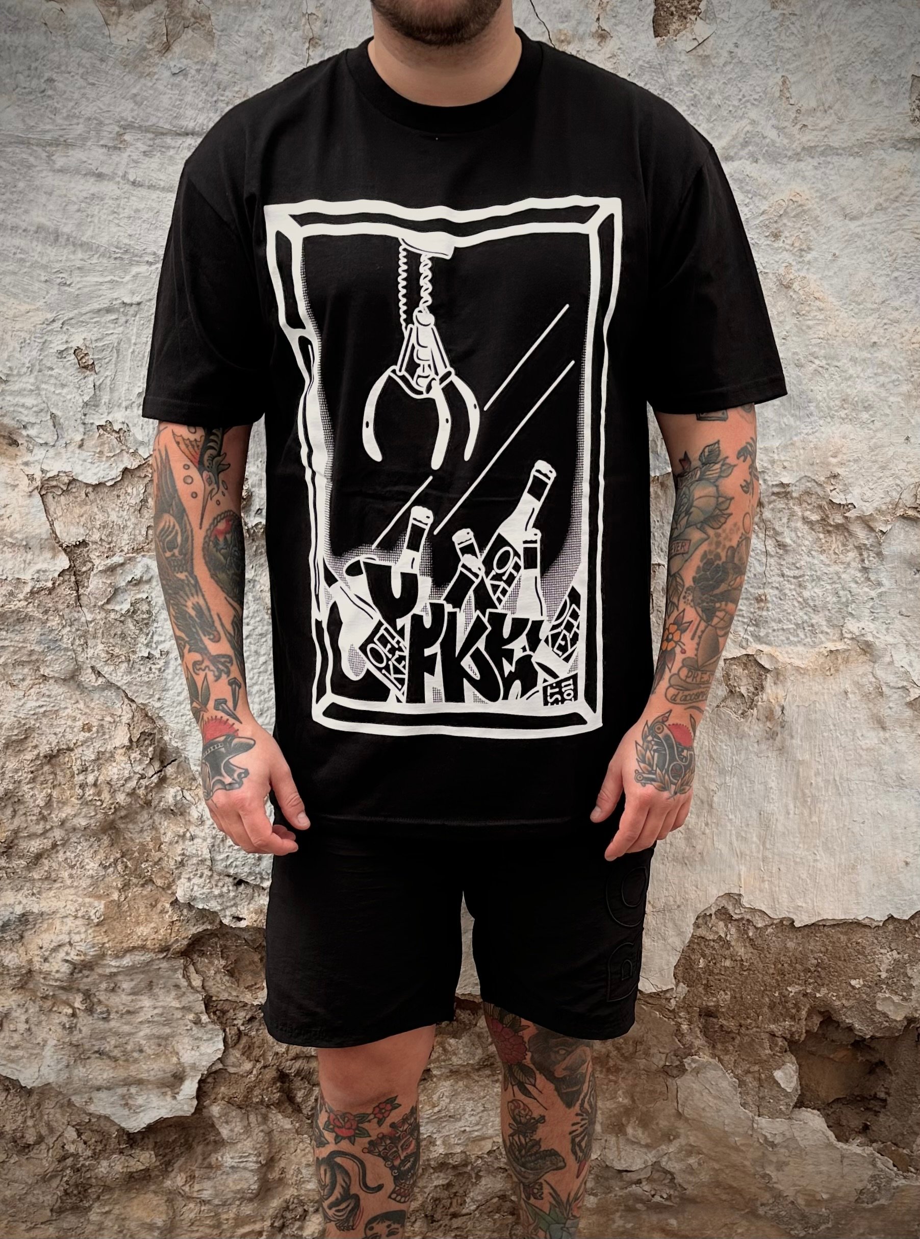 Designed & Screenprint by tattoo & graffiti artist Offkey onto Gildan Hammer.